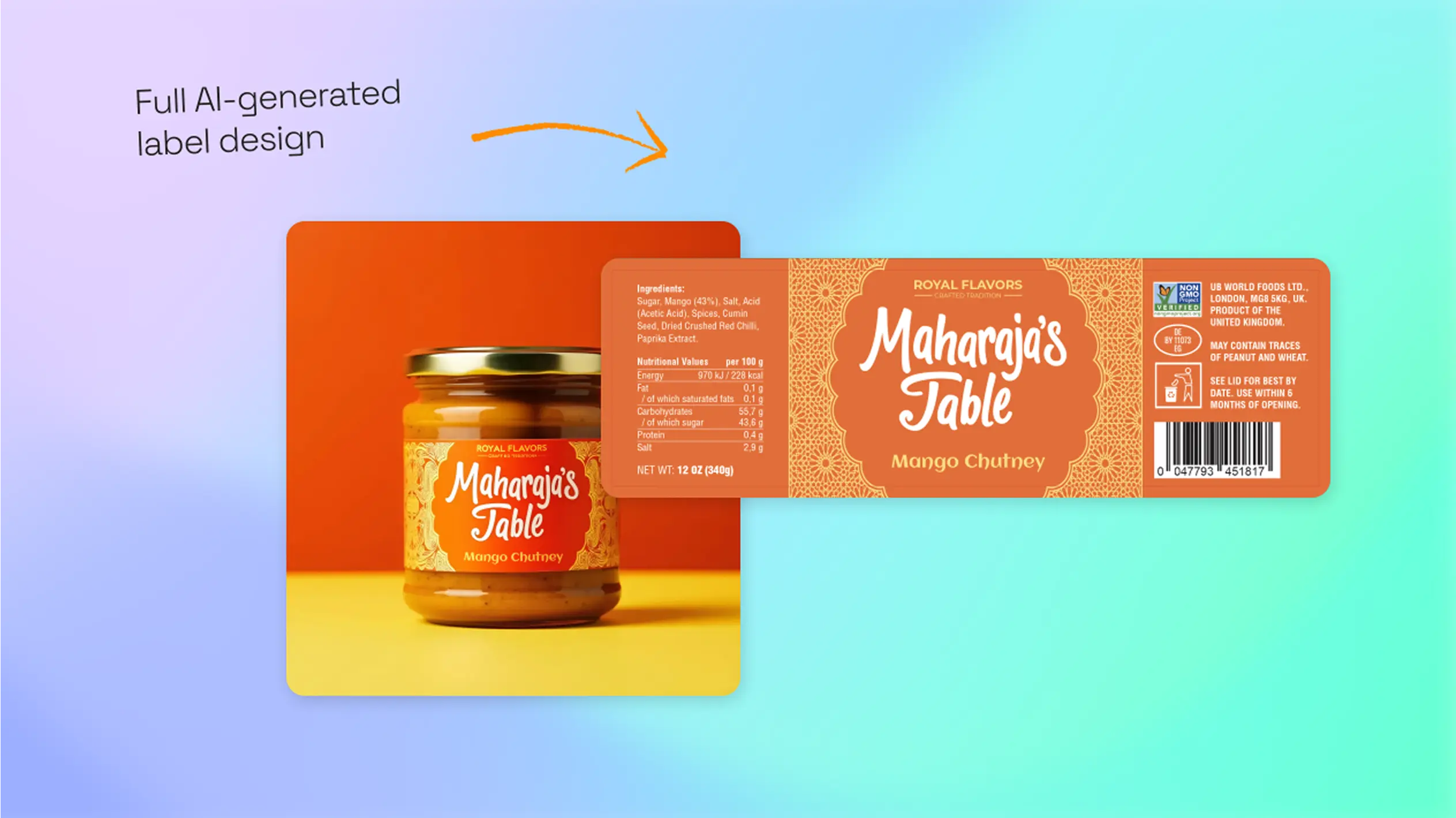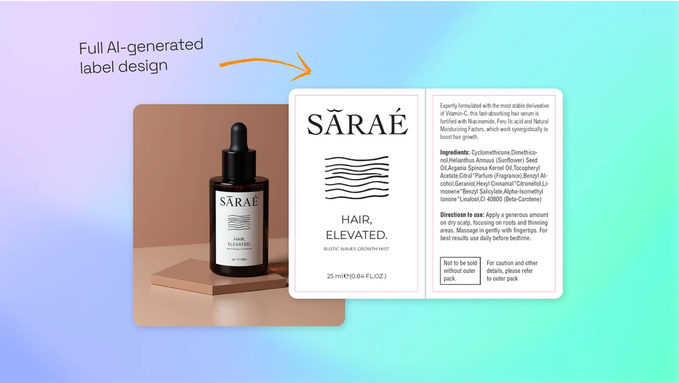 Turn any Canva or AI label into a print-ready file in 36h. Includes front and back of pack details.