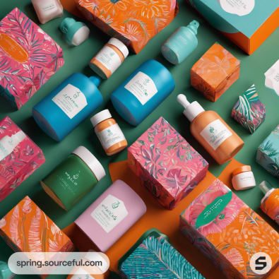 Discover the perfect packaging inspiration for your skincare line with our bold, retro, and edgy designs. Our vibrant and fun color scheme of green, indigo, blue, orange, and pink will make your products stand out. Embrace the bohemian aesthetic to appeal to a youthful, adventurous demographic. Let us help you create a skincare packaging that is as unique and effective as the products inside.