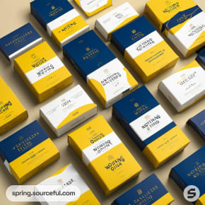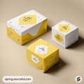 Yellow and white packaging boxes on gray background.