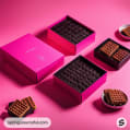 Variety of pink boxes with waffles and chocolates.