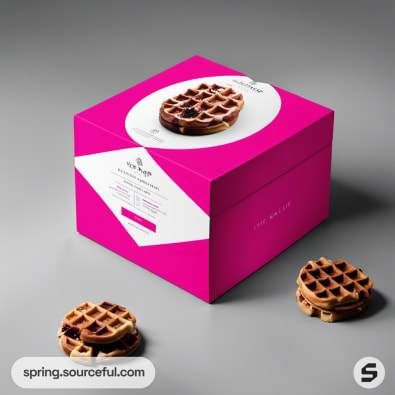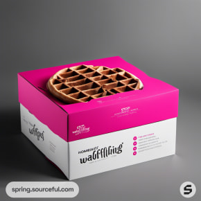 Pink and white waffle box with waffle design on top.