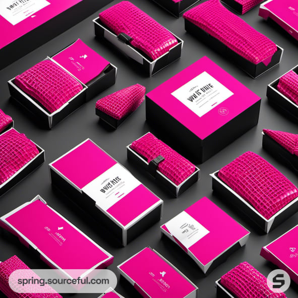 Pink and black waffle gift boxes on a grey surface.