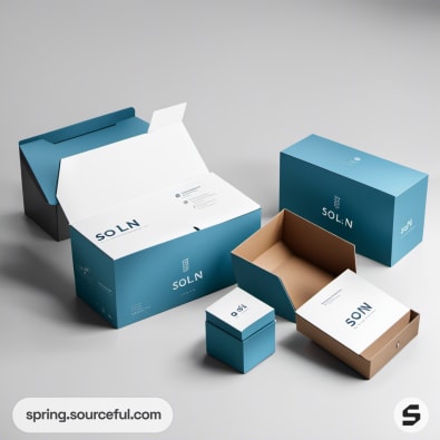 White and brown packaging boxes on a blue background.