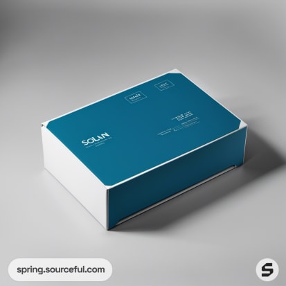 Blue and white packaging boxes on a grey background.
