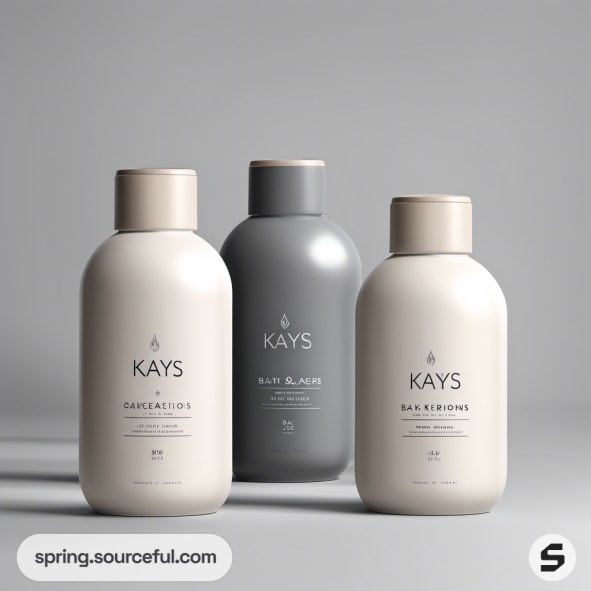 Trio of sleek, minimalist bottles in neutral tones on gray background.