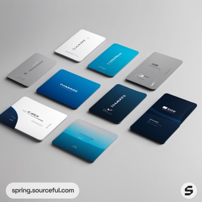 Assortment of credit-card sized items in blues and greys.