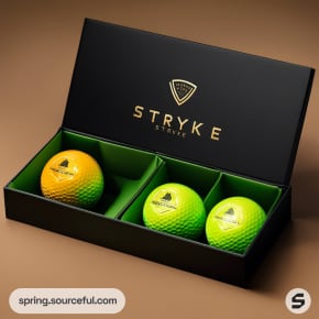 Green box with a set of white and yellow golf balls.