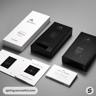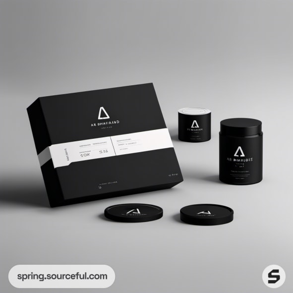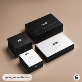 Black and white packaging boxes with minimalist design.