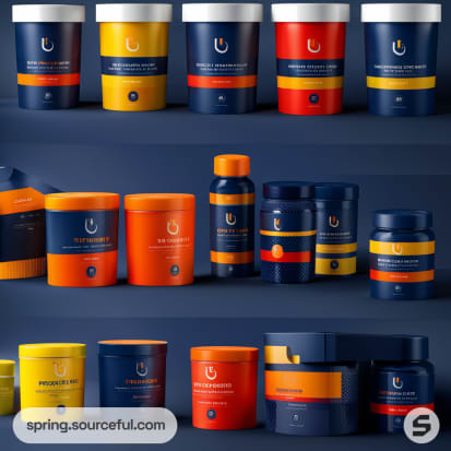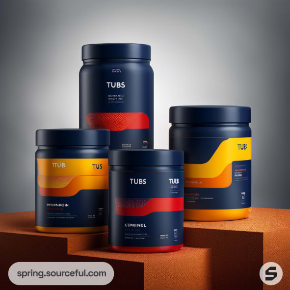 Discover the perfect blend of sporty, futuristic, and minimalist aesthetics in our cycling nutrition supplements packaging. Our tubs, adorned in a dynamic color scheme of navy blue, yellow orange, and red, are designed to inspire and energize. Explore our innovative packaging inspiration that perfectly encapsulates the essence of cycling nutrition. Experience the fusion of functionality and style that sets our supplement packaging apart in the fitness industry.