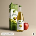 Green apple juice bottles with leaf labels on a green background.