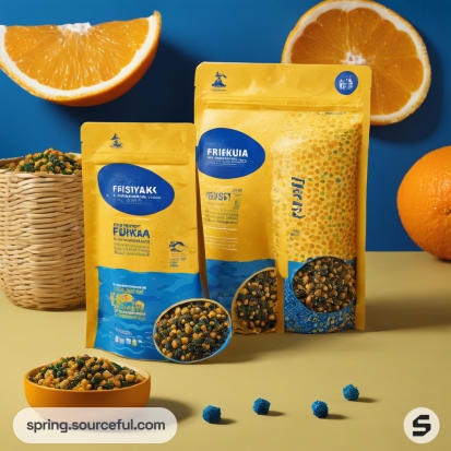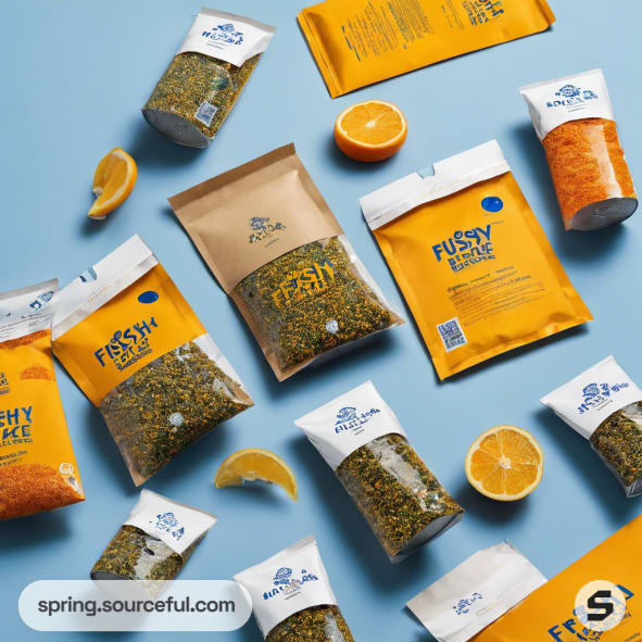 Discover the perfect blend of fun, natural, and illustrative aesthetics with our Furikake Singapore Easy and Convenient packaging design. Our recycled plastic mailer, adorned in a vibrant color scheme of yellow orange, orange, and ultramarine blue, is not only sustainable but also visually appealing. Get inspired by our eco-friendly packaging that effortlessly combines style and sustainability. Make your product stand out with our unique and creative packaging design that's as easy and convenient as the product itself.