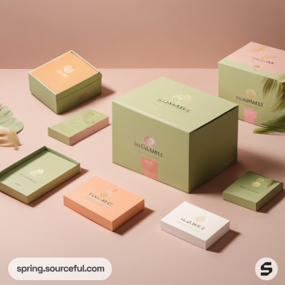 Discover the perfect packaging inspiration for your sugar waxing body care product with our elegant and modern mailer boxes. Our design aesthetic combines cute, pastel tones of cream, olive green, pink, apricot, ruby red, and brown, with vibrant, illustrative elements. These natural-themed boxes not only ensure the safe delivery of your product but also enhance its appeal to customers. Make your body care product stand out with our unique, stylish, and eco-friendly packaging solutions.