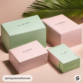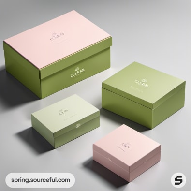 Stacked pastel green and pink gift boxes with 'Clean' label.