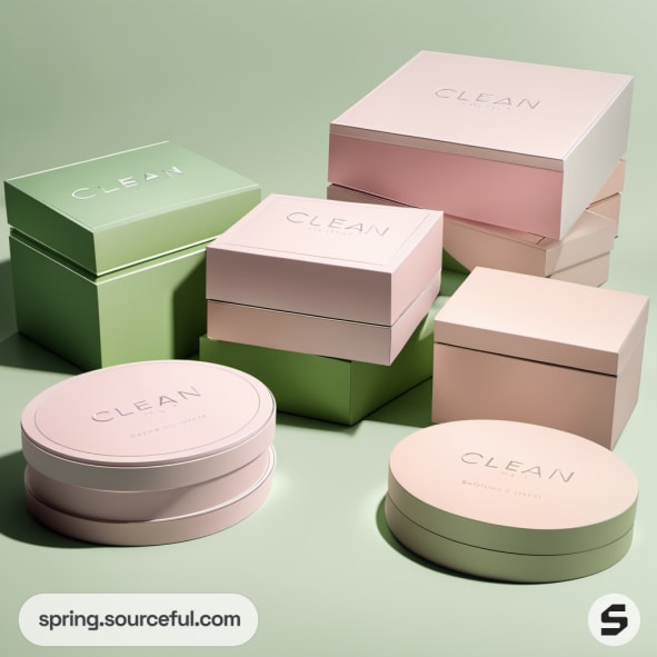Assorted pastel gift boxes with 'Clean' label on mint green background.