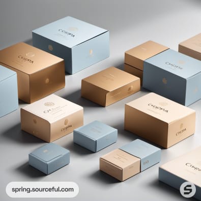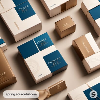 Collection of blue and gold boxes with sleek design.