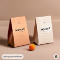 Peach and white triangular paper bags with apricot.