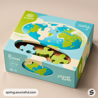 Discover the perfect packaging inspiration for our Planet Earth 3D wooden puzzle. Our packaging design combines a fun, handcrafted aesthetic with a pastel color scheme of blue, baby blue, white, and lime green. This cute and playful packaging not only protects your puzzle but also enhances the unboxing experience. Explore the world in a fun and eco-friendly way with our beautifully packaged 3D wooden puzzle.
