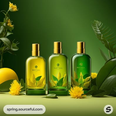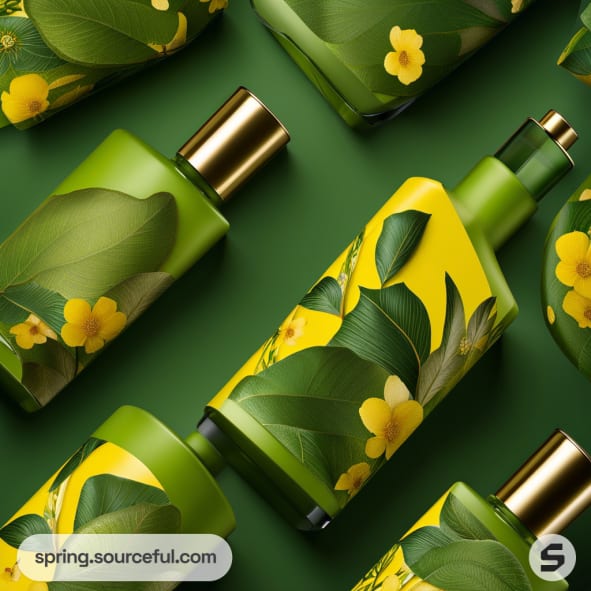 Discover the perfect blend of bold, slick, and luxury aesthetics in our natural botanicals perfume packaging inspiration. Our bottle designs, bathed in a vibrant color scheme of yellow and green, encapsulate the essence of nature's finest scents. Experience the allure of luxury perfume packaging that not only preserves the purity of natural botanicals but also enhances their appeal. Let our innovative and eco-friendly packaging designs inspire your senses and elevate your brand.