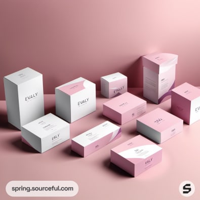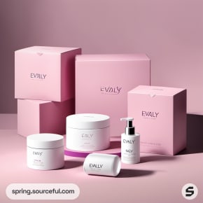 Pink geometric skincare packaging.