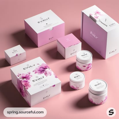 Floral-themed boxes on pink background.