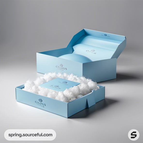 Blue mailing box with cloud-themed packaging inside.