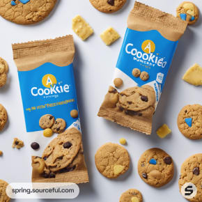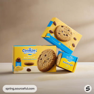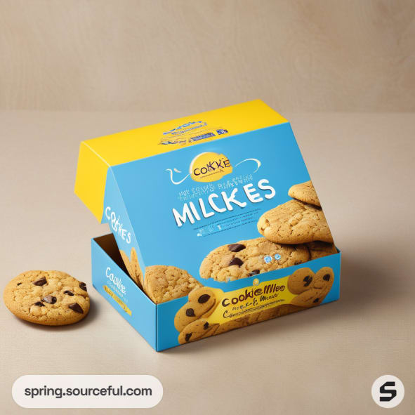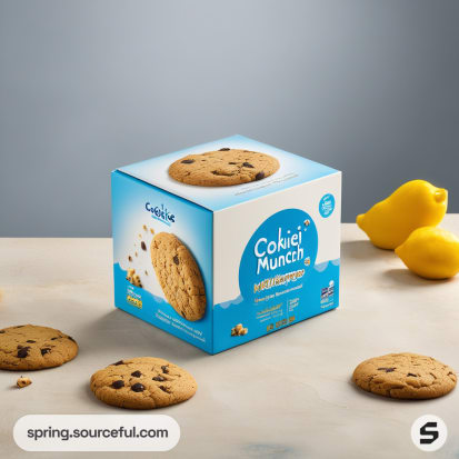 Discover the perfect packaging inspiration for our healthy millet cookies, presented in a stylish mailer box. Our design combines a fun and delicious aesthetic with a natural, healthy vibe, reflecting the wholesome goodness of millet. The color scheme of white, blue, and yellow adds a vibrant touch, making the product visually appealing. Experience the blend of taste and health with our millet cookies, beautifully packaged to entice your senses.