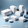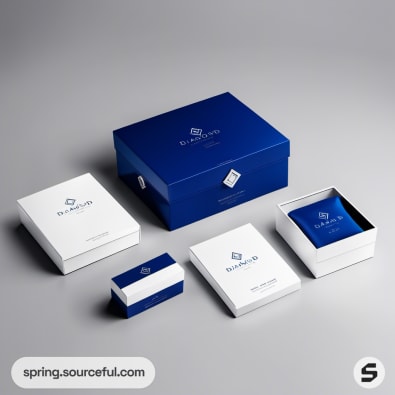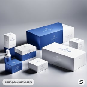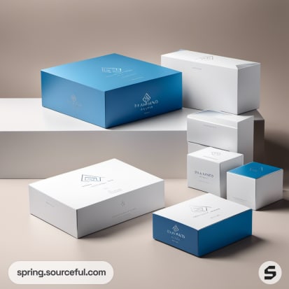 Blue and white luxury packaging boxes arrangement