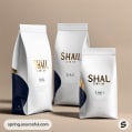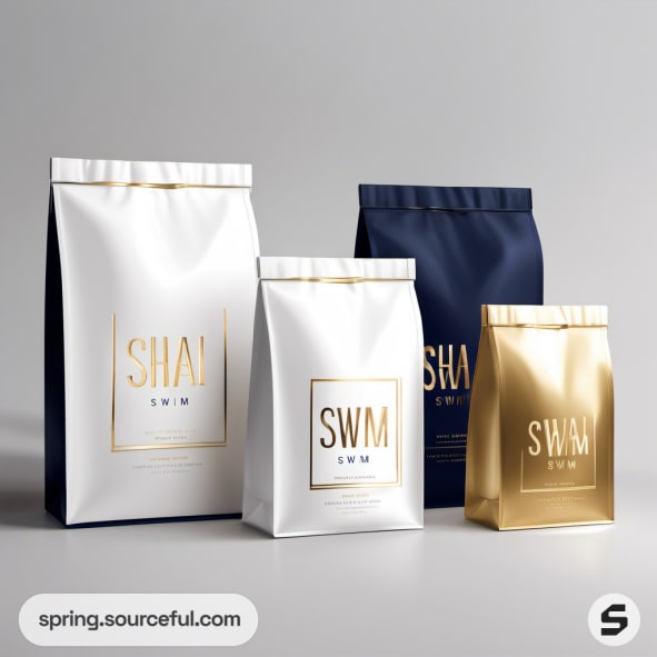 White and gold resealable pouches with minimalist design.