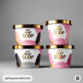 Four ice cream tubs with pink and gold designs on a gray background.