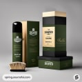Electronic shaver box with olive green and gold theme.