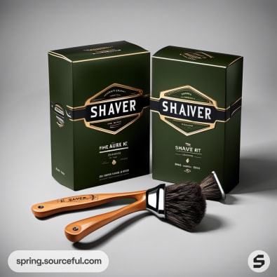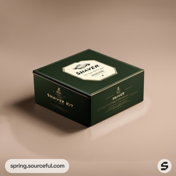 Green and gold shaver kit box with vintage design.
