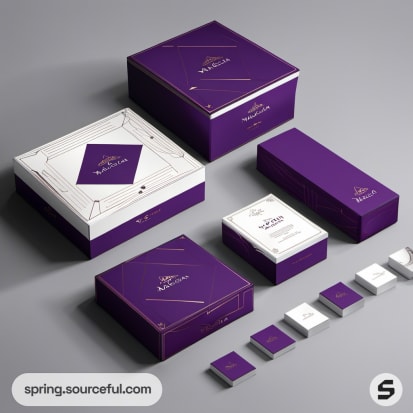 Stacked purple boxes with minimalistic design.