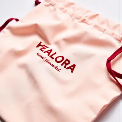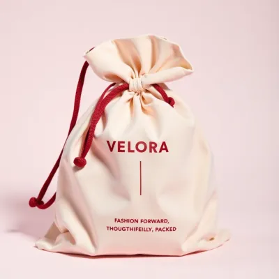 Drawstring bag packaging for Velora