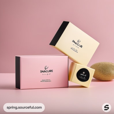 Discover the perfect packaging inspiration for your manicure nail gel wraps, nail polish, and other nail cosmetic products. Our mailer box design combines a pastel aesthetic with a classic touch, featuring a color scheme of light pink, black, and light yellow. This natural and elegant packaging design not only ensures the safety of your products but also enhances your brand's visual appeal. Make your nail cosmetics stand out with our unique and stylish packaging design.