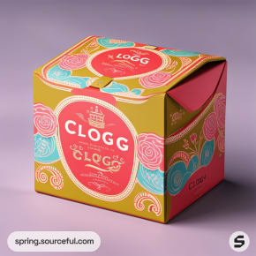 Pastel-colored boxes with decorative 'CLOGG' branding.
