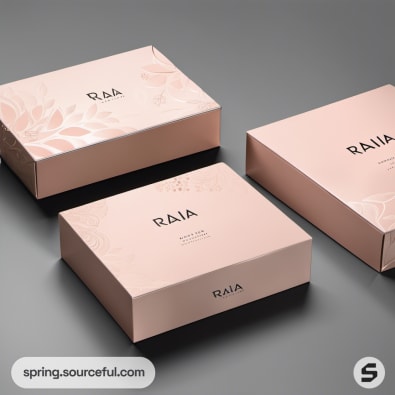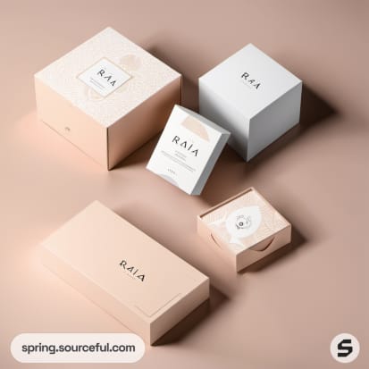 Cream and blush boxes with minimalist branding.