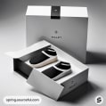 White lid and black base shoe box with clean typography.
