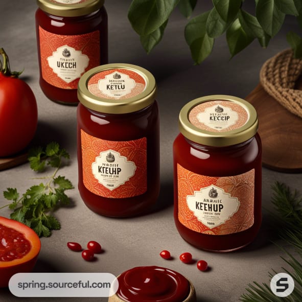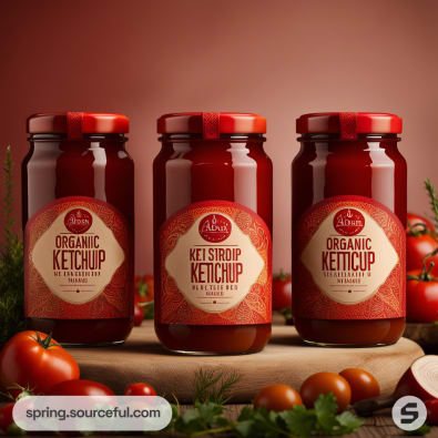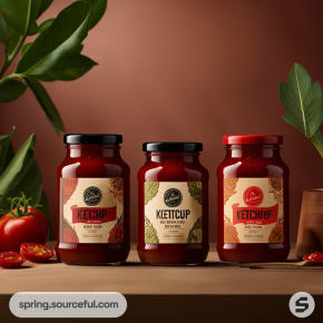 Discover the perfect blend of natural, bohemian, and sustainable aesthetics for your organic ketchup packaging. Our handcrafted designs, featuring a warm color scheme of auburn, amber, and ruby red, will make your product stand out on the shelves. Get inspired by our unique jar packaging ideas that not only preserve the freshness of your organic ketchup but also promote eco-friendly practices. Elevate your brand with our packaging designs that are as deliciously appealing as the organic ketchup they hold.