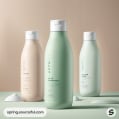 Three curved bottles with beige and green hues.