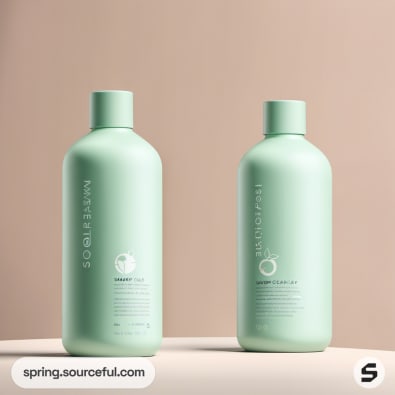 Two mint green shampoo bottles side by side.