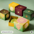 Various colored cube boxes with embossed patterns in green, red, and orange hues.