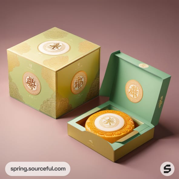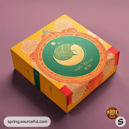 Yellow square box with ornate moon design and lunar-themed decoration.