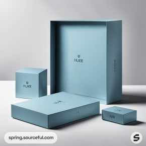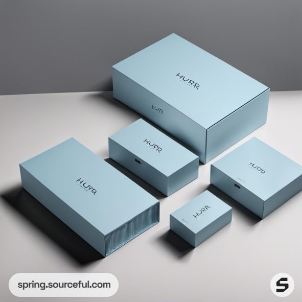 Set of pastel blue rectangular boxes on a grey background.