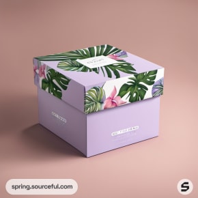 Lavender box with green tropical leaf lid design.