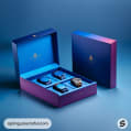 Luxurious gradient blue and purple watch box set with four watches, displayed on a blue background.