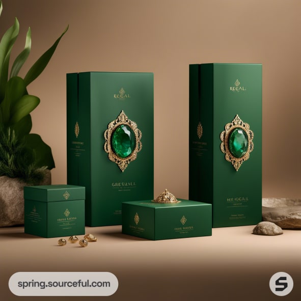 Discover regal and beautiful packaging inspiration for sustainable alternative gemstone jewellery. Our green color scheme reflects our commitment to eco-friendly practices. Explore a variety of packaging types that not only protect your precious pieces but also align with your values. Make a statement with our sustainable jewellery packaging that's as unique and beautiful as the gems they hold.