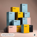 Colorful rectangular boxes arranged in a pattern with 'PAKT' branding.