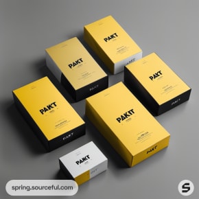 Stacked yellow and black boxes with 'PAKT' branding on a dark surface.