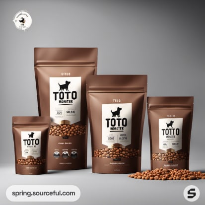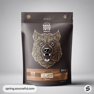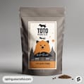 Beige pouch with large black 'TOTO' text, surrounded by nuts.