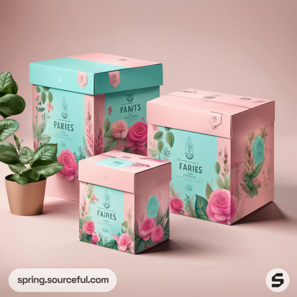 Discover the magic of our illustrative, fairy-inspired carton product boxes, perfect for sending plants through the post. Our unique packaging design, featuring a captivating color scheme of cyan and rose pink, ensures your plants arrive in style. Get inspired by our enchanting packaging solutions that blend functionality with aesthetics. Turn every plant delivery into a special occasion with our beautifully designed, eco-friendly carton boxes.